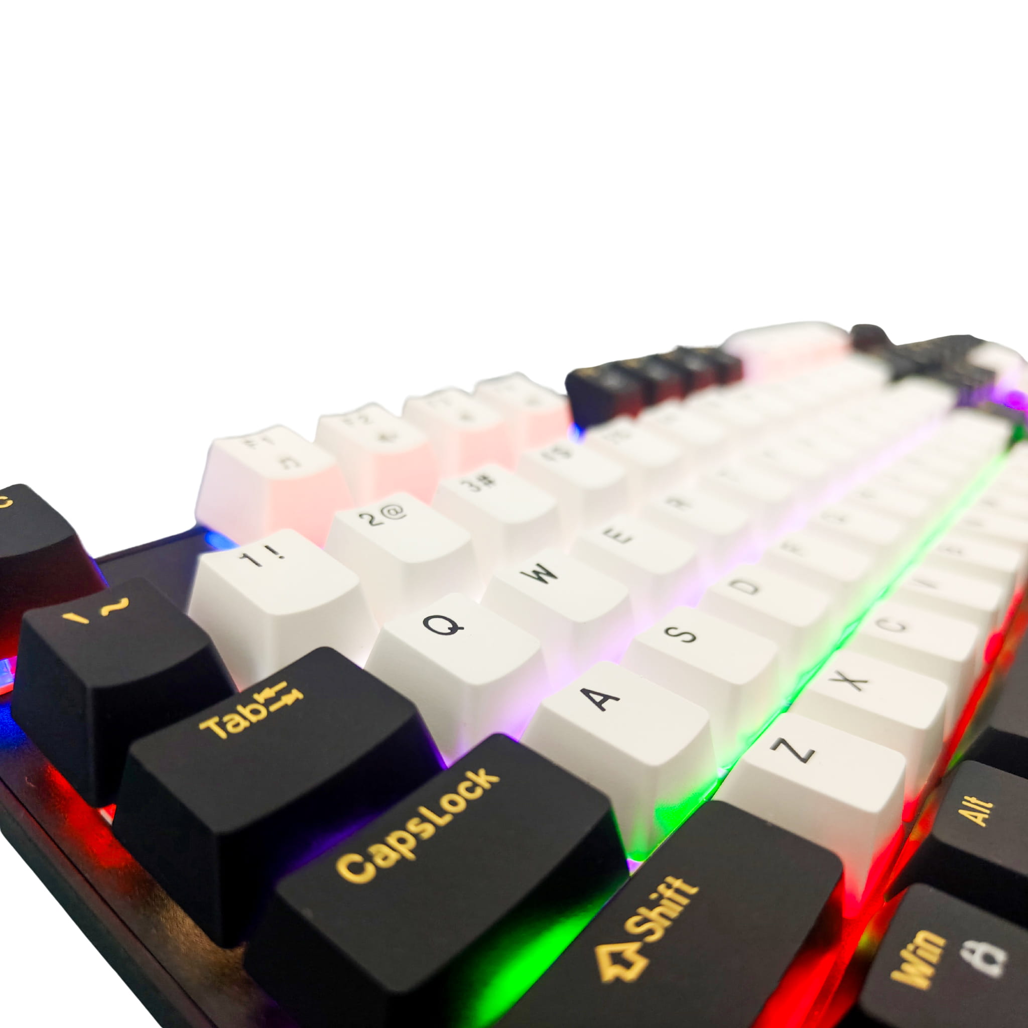 Klawiatura mechaniczna z podświetleniem RGB charakteryzuje się nowoczesnym, bezramkowym designem, który nadaje jej elegancki i minimalistyczny wygląd. Dzięki takiej konstrukcji klawiatura jest bardziej kompaktowa i łatwa do czyszczenia, a jednocześnie oferuje pełnowymiarowy układ klawiszy, co zwiększa komfort użytkowania. Bezramkowy design sprawia, że Twoje biurko wygląda schludnie i nowocześnie, jednocześnie zapewniając pełną funkcjonalność.
