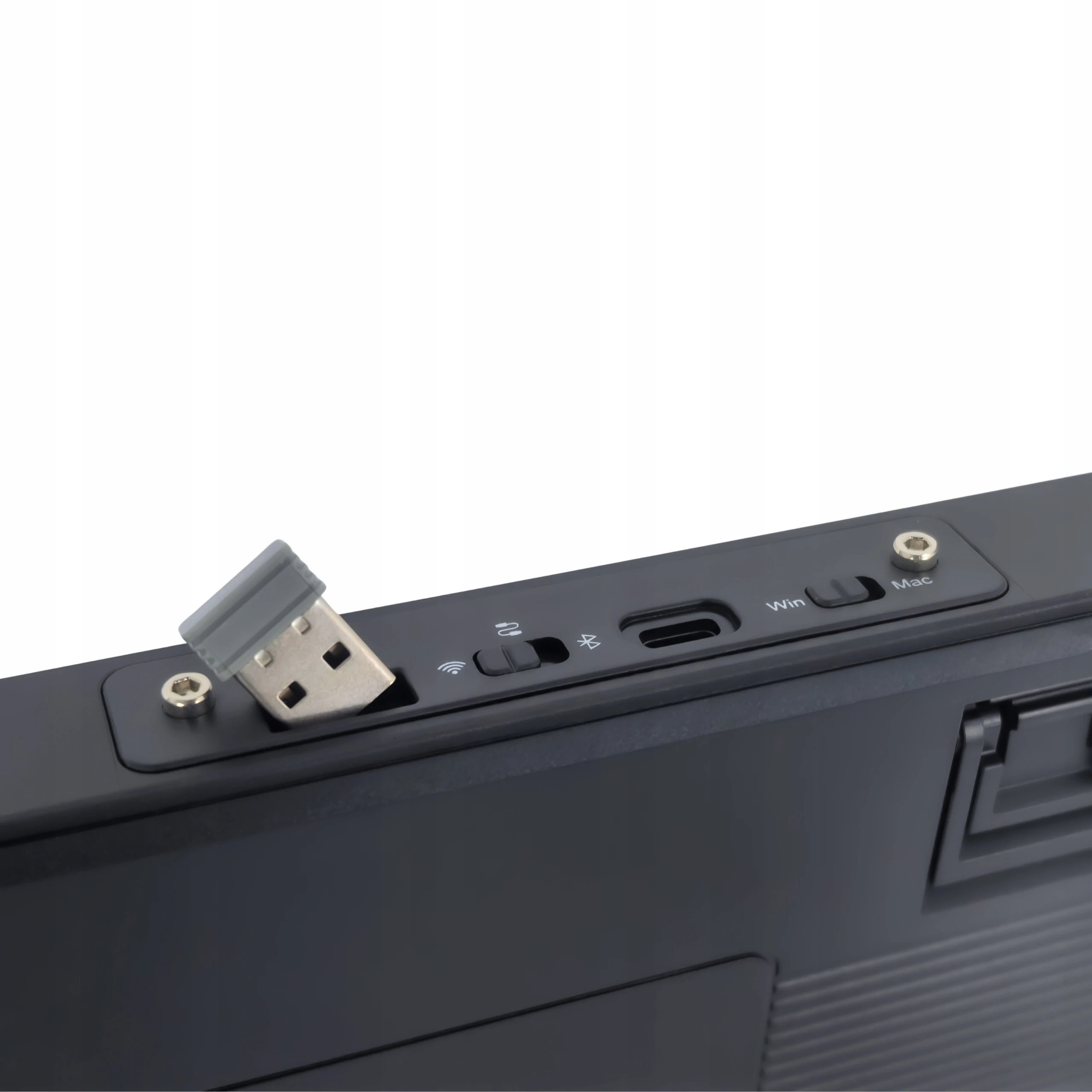 Tryb połączenia możesz zmieniać w locie — między USB, odbiornikiem 2,4 GHz i Bluetoothem — bez restartowania urządzenia. Klawiatura obsługuje przełączanie układu klawiszy między Windows a macOS, co ułatwia pracę na różnych systemach.