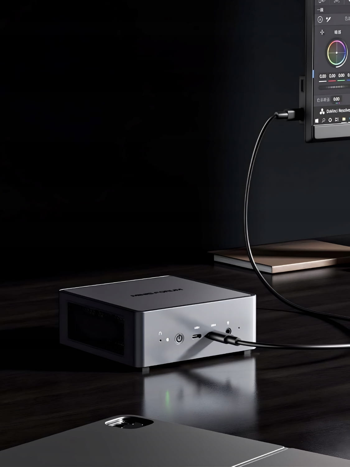 Mini komputer umożliwia jednoczesne podłączenie aż czterech monitorów za pomocą dwóch portów HDMI 2.1 oraz dwóch portów USB-C z obsługą obrazu. To idealne rozwiązanie dla profesjonalistów, którzy pracują na wielu ekranach na przykład przy: edycji wideo, grafice, kodowaniu czy zarządzaniu projektami.