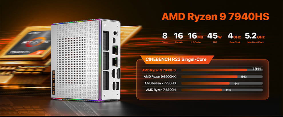 Mini Komputer PELADN HO-4, AMD Ryzen 9 7940HS, 16GB/1TB, USB-C, Win 11 Pro. Model HO-4