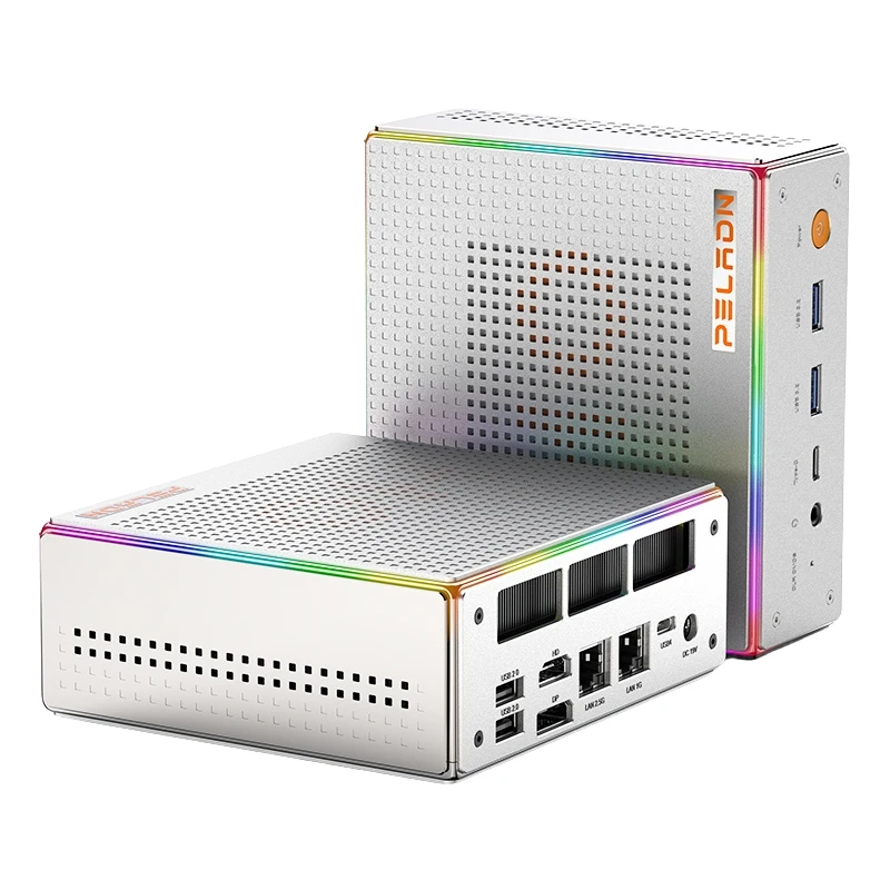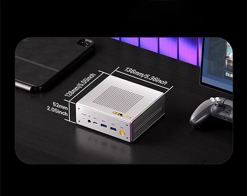 Mini komputer PELADN charakteryzuje się wyjątkowo kompaktową konstrukcją o wymiarach 136x128x52 mm oraz wadze jedynie 900 g. Zajmuje bardzo mało miejsca na biurku lub za monitorem, jednocześnie oferując pełną funkcjonalność standardowego komputera stacjonarnego. To doskonały wybór do biura, domu lub środowisk przemysłowych, gdzie istotna jest oszczędność przestrzeni oraz ergonomia stanowiska pracy.