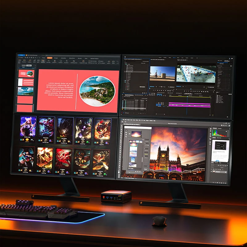 Urządzenie umożliwia jednoczesną obsługę do czterech monitorów dzięki złączom: 1x HDMI 4K@60Hz, 1x Displayport 4K@60Hz oraz 2x USB-C z funkcją DisplayPort 4K@60Hz. Pozwala to na wygodną pracę wielozadaniową, rozszerzenie przestrzeni roboczej lub tworzenie rozbudowanych stanowisk multimedialnych.